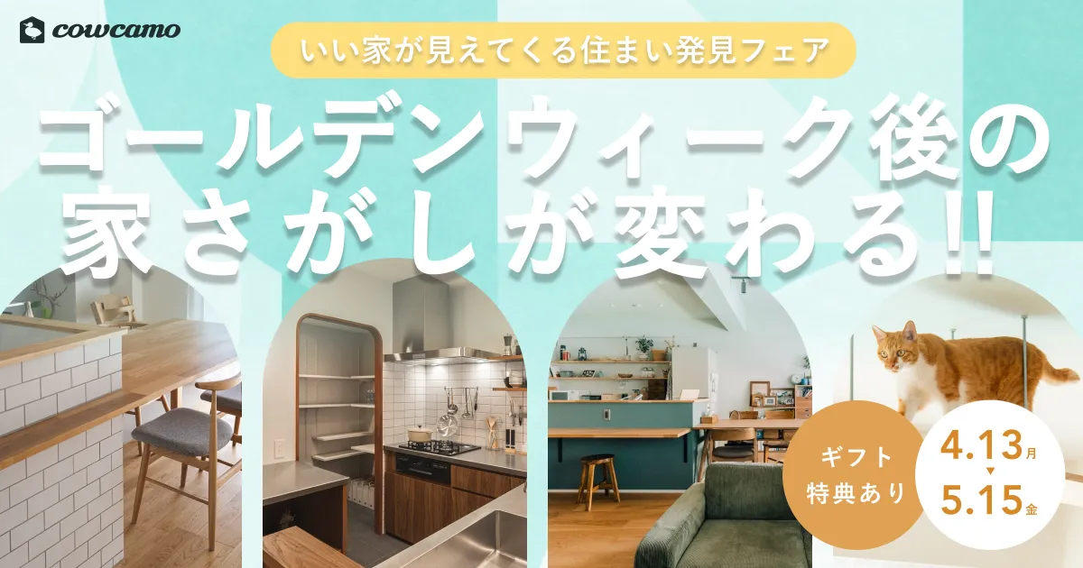 ゴールデンウィークが終わると、新たに家探しを始めたいと考える人が多くなります。その動きに合わせ、中古・リノベーション住宅の流通プラットフォームであるcowcamo(カウカモ)が、4月13日から5月15日までの期間中に『いい家が見えてくる住まい発見フェア』を開催します。このイベントは、家探しを始める前に必要な知識を身につける絶好の機会です。