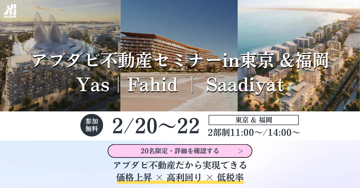 このセミナーは、日本人投資家を対象に、アブダビ不動産の優先情報を提供します。アブダビの都市開発戦略や、不動産市場の最新動向についても詳しく解説され、特にヤス島に焦点を当てた内容が予定されています。そのため、アブダビへの投資をお考えの方はぜひ参加を検討してみてください。
