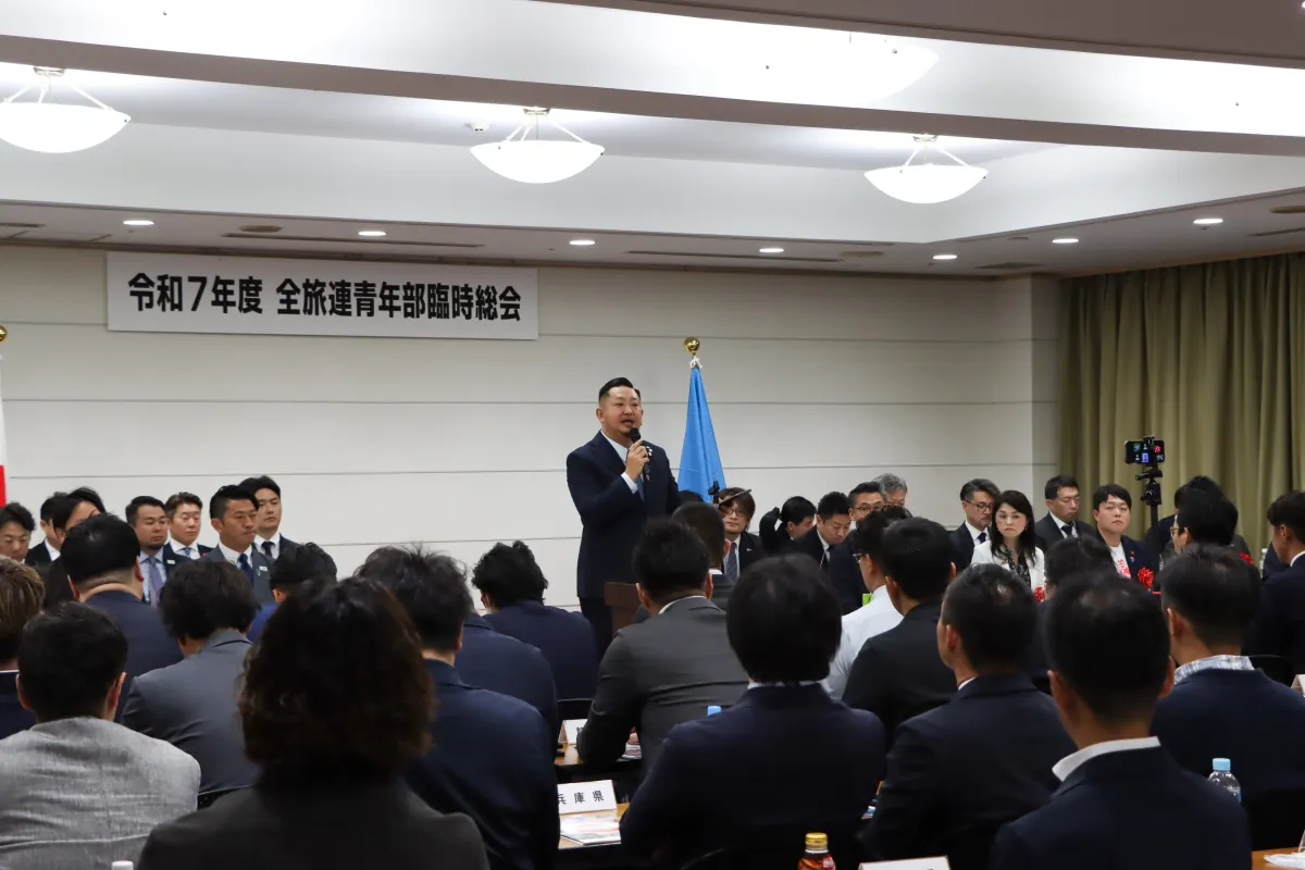 9月19日、大阪のハートンホテル心斎橋にて全旅連青年部の令和7年度臨時総会が行われました。この日、多くの来賓が訪れ、全旅連会長の井上善博氏や女性経営者の会長である山田佐知氏などが出席しました。