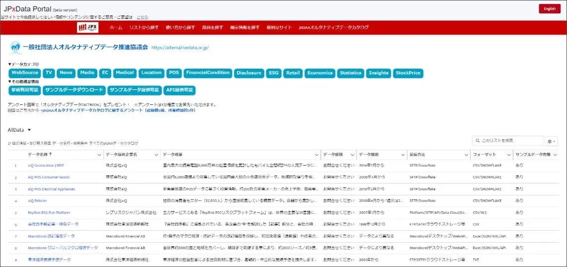 オルタナティブデータカタログの実証実験延長と機能拡充