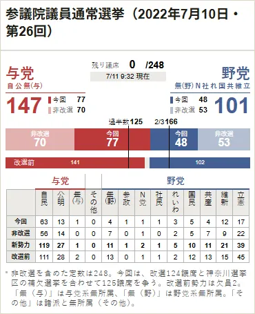 2022年の参院選の速報特設ページもデータとして残されており、前年と比較した分析を行う際にも役立つことでしょう。過去のデータを参照することは、今回の選挙結果をより深く理解するために重要です。