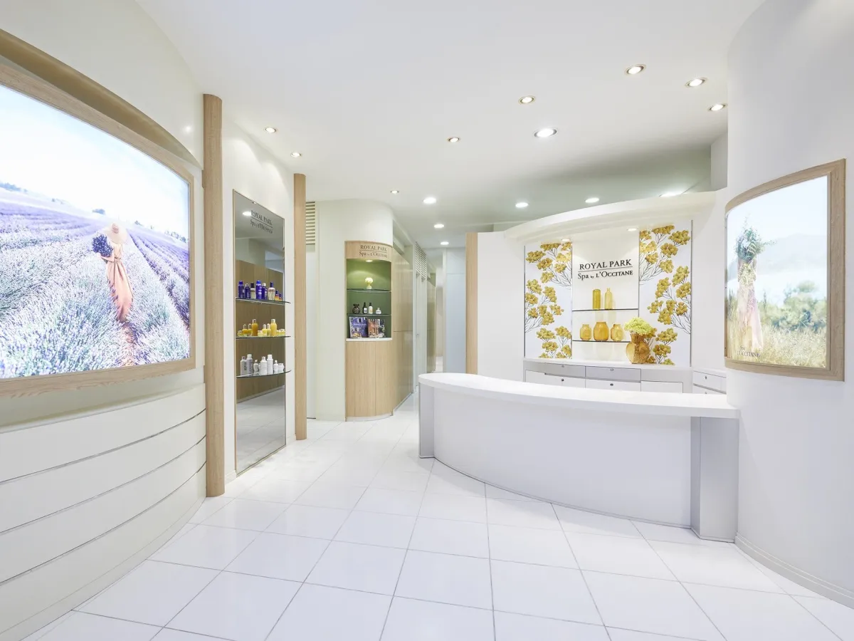 椅子に座ると、スパの優雅な香りが広がり、リラックスした瞬間がもたらされます。さらに、ロクシタンのスキンケアアイテムをご自宅でも楽しめるのは嬉しい特典ですね。
