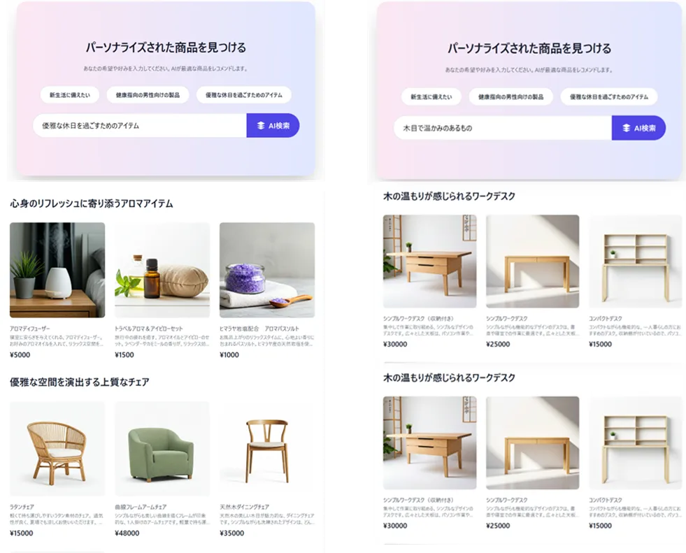実際に「Rtoaster GenAI」を使用すると、「優雅な休日を過ごすためのアイテム」というような抽象的なフレーズでも、的確な情報を表示できるという特長があります。このような機能が、利用者の検索体験を一新すると期待されています。