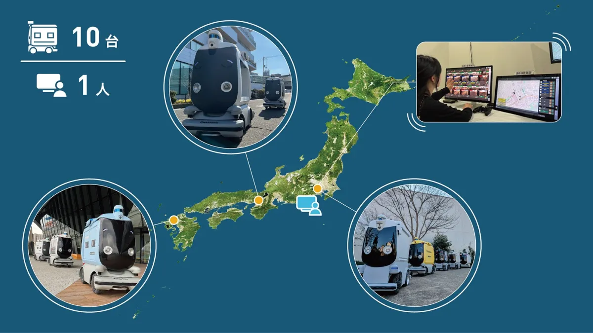 2025年1月23日、パナソニック ホールディングス株式会社(以下、パナソニックHD)は、日本初となる1人のオペレーターによる遠隔操作型小型車の複数地域、合計10台同時の公道走行に関する道路使用許可を取得し、その実証実験を開始しました。2022年4月からの段階では同時に4台を運行していましたが、今回の実証実験ではさらなる効率化を実現しました。