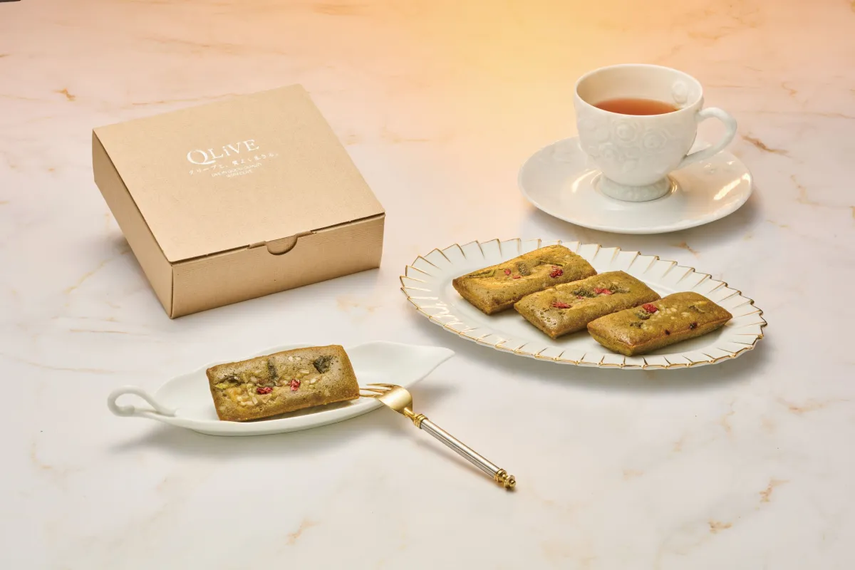 『恋色クリーブフィナンシェ』は、国東産オリーブを使用し、その風味を最大限に引き立てています。特に、そのしっとりとした食感が特徴で、通常のフィナンシェとは一線を画しています。リッチな気持ちにさせる甘く切ない味わいには、オリーブに合う甘酸っぱいキャラメルチーズクリームが中に入っています。