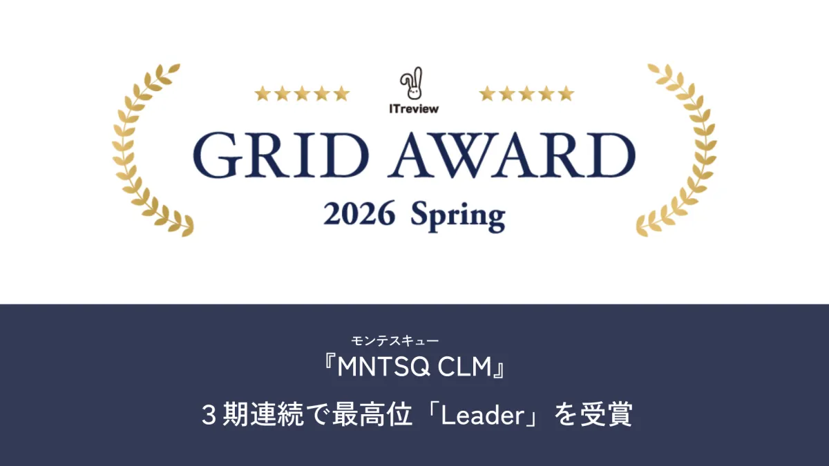 MNTSQ株式会社が開発した契約ライフサイクル管理プラットフォーム『MNTSQ CLM(モンテスキュー CLM)』が、国内のITレビューサイトITreview主催の「ITreview Grid Award 2026 Spring」において、契約管理ソフトウェアの最高評価である「Leader」を3期連続で受賞しました。この受賞は、顧客満足度と市場での認知度を両立させた製品に贈られる称号で、特にエンタープライズ企業からの信頼を象徴するものです。
