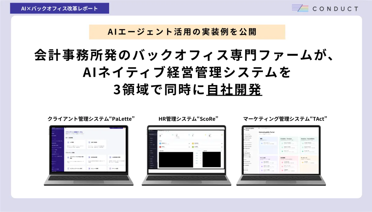 東京都世田谷区に本社を置く株式会社コンダクト(代表取締役:植西祐介)は、最近、AIエージェントを活用して開発した三つの新しい経営管理システムを発表しました。具体的には、会計・労務支援を行う「PaLette」、HR管理を担う「ScoRe」、そしてマーケティング・営業管理を行う「TAct」の三つのポータルです。