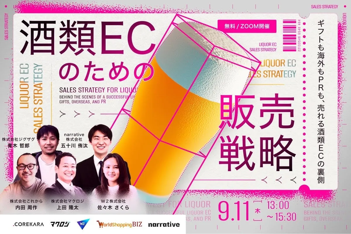 2025年9月11日、株式会社ジグザグが主催する無料オンラインセミナー「売れるECの共通点は?酒類ECのための販売戦略」が開催されます。このセミナーでは、クラフトビールや日本酒などの酒類商材に特化したECサイトの運営や販売戦略に関する具体的な知識を全6つの講演を通して学ぶことができます。