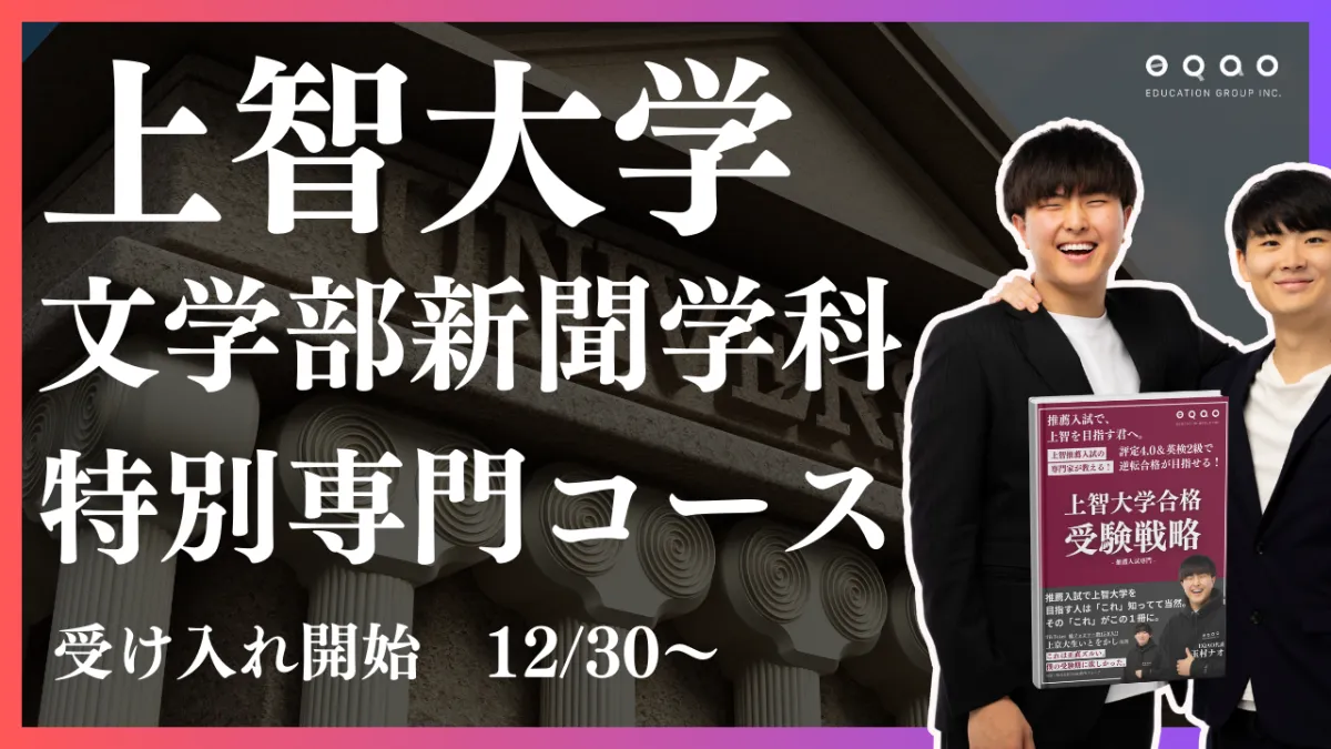 上智大学の文学部新聞学科に挑戦するための公募推薦入試が注目を浴びています。特に、EQAO教育グループが提供するオーダーメイドのサポートが、多くの受験生に高い合格率をもたらしているのです。この記事では、EQAOのカリキュラムの特徴と上智大学の新聞学科の特長について紹介します。
