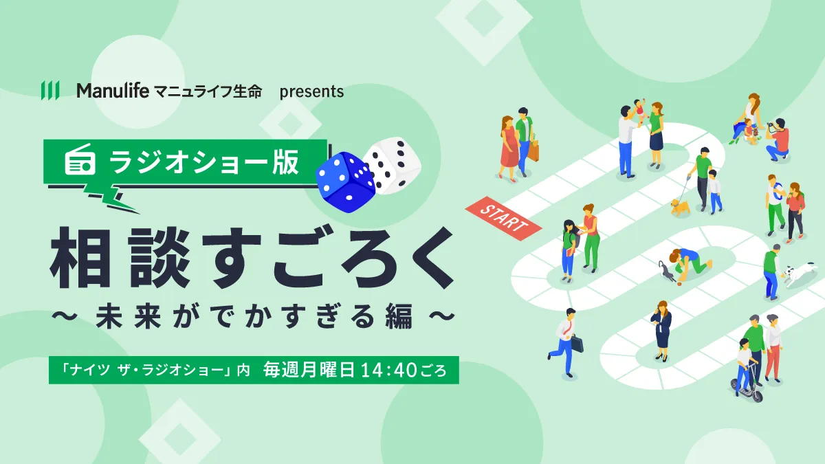 また、マニュライフ生命は、ニッポン放送の人気番組「ナイツ ザ・ラジオショー」において新コーナー『ラジオショー版相談すごろく!〜未来がデカすぎる編〜』への協賛を発表しました。このコーナーでは、すごろくのボードゲームを使い、視聴者の体験や悩みを元に、人生の様々な局面を楽しく考えていこうという試みです。