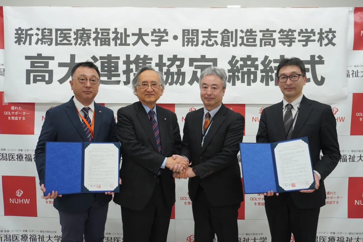 新潟医療福祉大学と開志創造高等学校が、教育・医療の未来を見据えた高大連携協定を2月6日(金)に締結しました。この提携は、高校生たちに医療系職業についての理解を促し、地域社会で活躍する人材を育てることを目的としています。