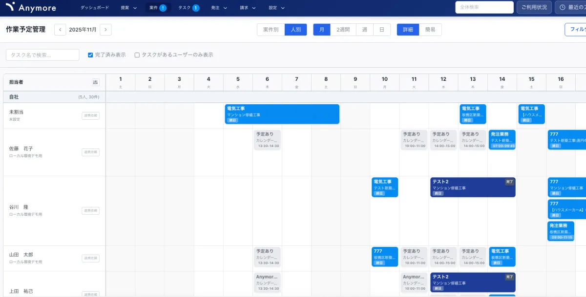 この機能により、案件に関わる全ての関係者のスケジュールが一目でわかるようになり、適切なタイミングでの作業依頼を行うことができるようになります。