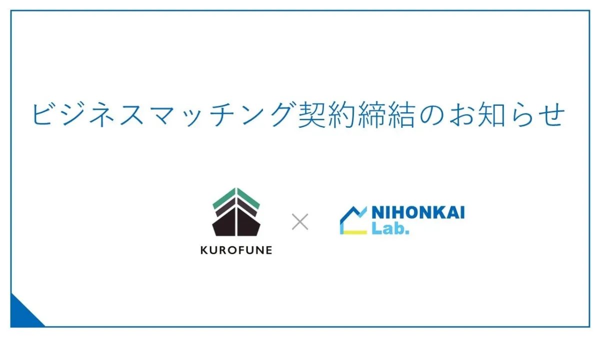 株式会社日本海ラボ(本社:富山市、社長:新田洋太朗)は、KUROFUNE株式会社(名古屋市、社長:倉片稜)とのビジネスマッチング契約を確定したことを発表しました。