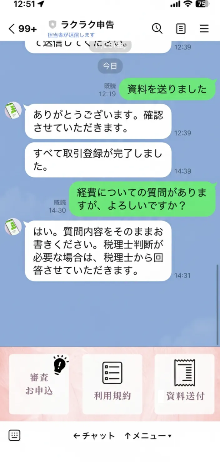 「ラクラク!丸投げ申告」では、税理士資格が必要な業務も全て提携の税理士が担当し、法律にも完全に従っているため、安心して利用できます。また、LINEを通じていつでも相談が可能で、忙しい日中でも手軽に対応できます。