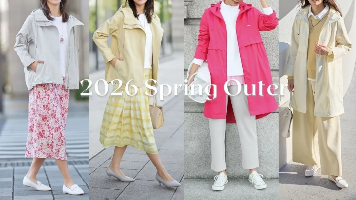 新作コートは「はっ水UVカットストレッチ軽量コート」と「はっ水UVカットAラインコート」の2種類です。どちらも春先から初夏までの幅広いシーズンで活用できるデザインとなっています。