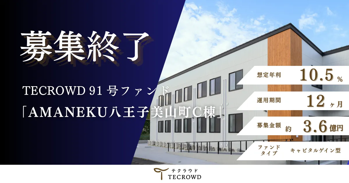 TECROWD91号ファンド「AMANEKU八王子美山町C棟」の募集終了