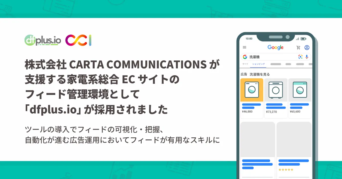この度、株式会社CARTA COMMUNICATIONSが支援する家電系の大手ECサイトにおいて、データフィード管理ツール「dfplus.io」が採用されたことが発表されました。この革新的なツールの導入は、Googleショッピング広告におけるフィード管理の効率と精度を大きく向上させることでしょう。