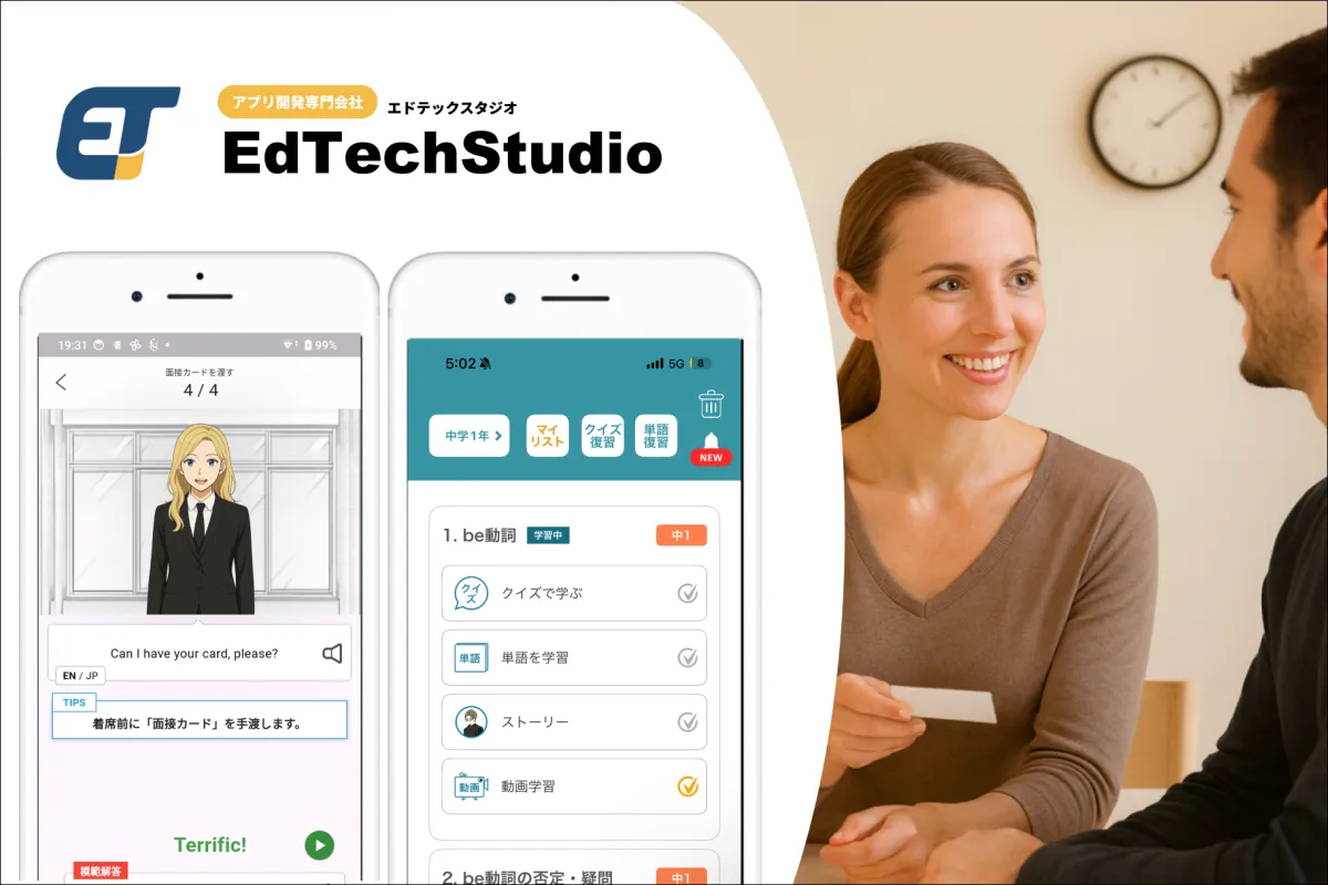 株式会社EdTechStudioは、「最高の学習環境をITを通して提供する」ことを企業のビジョンに掲げ、英語学習アプリの開発を行っています。学習者一人ひとりに寄り添った質の高い学習体験の提供を目指し、設計から開発、運用までを行っています。