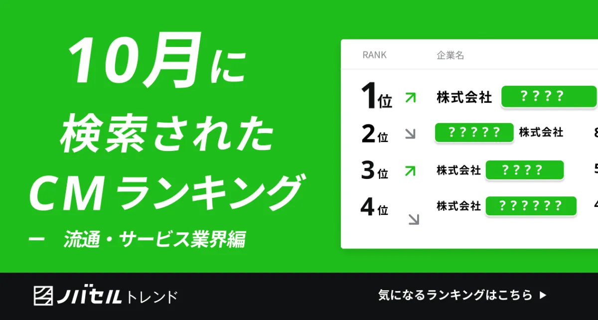 ノバセル株式会社が提供するテレビCM効果分析ツール「ノバセルトレンド」によると、2025年10月に放送された流通・サービス業界のテレビCMにおける指名検索スコアが発表されました。この指名検索スコアは、CMの放映時におけるブランド名の検索数の増加を計測したもので、特に注目を集める結果となっています。