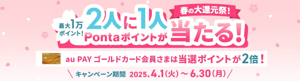 2025年の春、auフィナンシャルサービスが「春の大還元祭」を開催します。このイベントでは、au PAY カードまたはau PAY ゴールドカードを使ってお買い物をすると、なんと2人に1人にPontaポイントが当たるチャンスが訪れます!