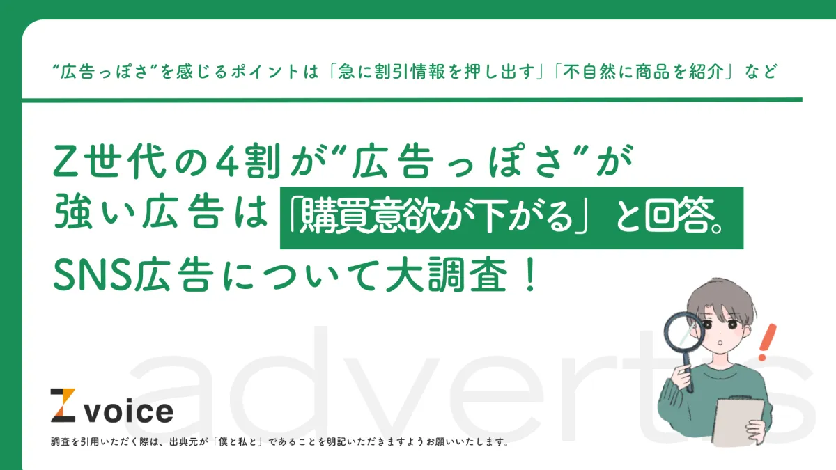 SNS上での広告が購買意欲に結びつく要因として、Z世代の約30%が何らかの商品を購入するきっかけとしてSNSを利用したと回答しています。しかし、実際に「広告っぽさ」を感じると、その購買意欲が低下することが明らかになりました。特に、14.6%が「広告っぽさ」がないことで購買意欲が増すとされ、広告の受け入れに関する厳しい要求が示されています。