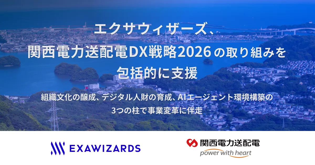 株式会社エクサウィザーズは、関西電力送配電株式会社の「関西電力送配電DX戦略2026」において、組織文化の革新、デジタル人材の育成、AIエージェント開発の環境提供といった包括的な支援を行っています。関西電力送配電は、顧客や社会に新たな価値をもたらす「エネルギープラットフォーマー」となることを目指しており、その実現に向けてエクサウィザーズが積極的に関与しています。