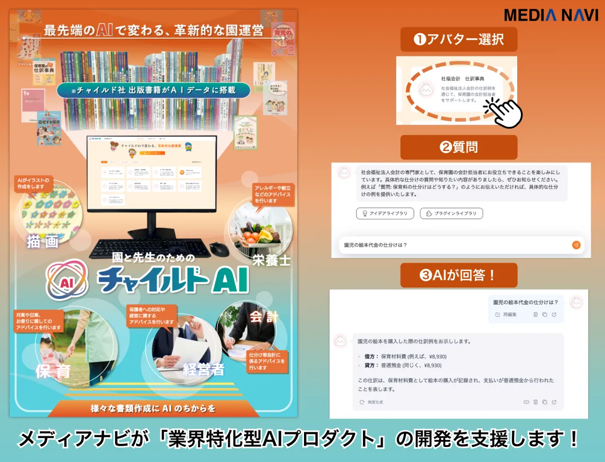 株式会社メディアナビは、生成AI関連のプロダクト開発を行う企業に向けて新たな支援を開始しました。同社が持つ多様な生成AI技術を基にしたこの支援は、迅速な製品化を可能にすることを目指しています。そんな中、第一弾として2024年12月中旬に発売予定の「チャイルドAI」が、株式会社チャイルド社から提供されることに決まりました。このAIは、保育園や幼稚園の運営をサポートするために特化されており、さまざまな業務に役立つ機能が満載です。