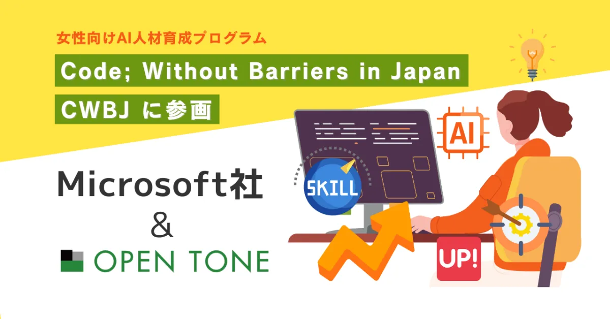 日本マイクロソフトが主催するデジタル人材育成プログラム「Code; Without Barriers in Japan(CWBJ)」に、株式会社オープントーン(以下、オープントーン)が協賛し、新たに参画することが発表されました。このプログラムは、特に女性に対してAIリスキリングの機会を提供し、テクノロジー業界での活躍を後押しすることを目的としています。