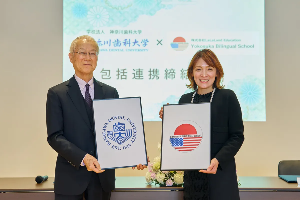 YBSは2013年に創立以来、約2万人の米軍関係者が住む街で、独自の国際教育を展開してまいりました。2022年には、イギリスの「ケンブリッジ国際認定校」としての認証を受け、教育水準の高さを証明しています。この度、100年以上の歴史を誇る神奈川歯科大学との提携が決定したことにより、さらなる教育の広がりが期待されます。