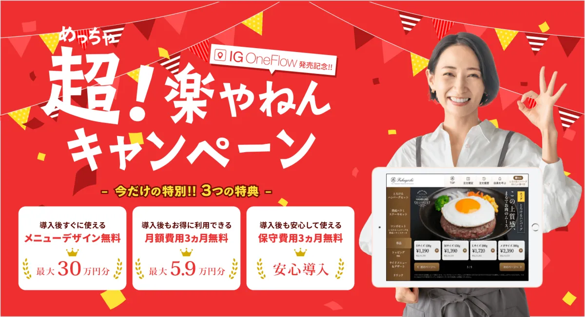 株式会社イグレック(所在地:大阪市西区、代表取締役:新田 秀幸)は、飲食業界を支える革新的なシステム「IG OneFlow(アイジーワンフロー)」の導入を祝し、特別キャンペーン「超!楽やねんキャンペーン」を2025年4月1日から4月30日までの期間中、開催することを発表しました。