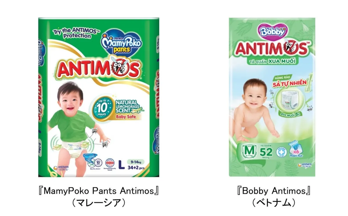 ユニ・チャームでは、子どもたちのデング熱予防のために、蚊を寄せ付けない成分を含んだ紙おむつを提供しています。以下は、展開されている国とその商品です: