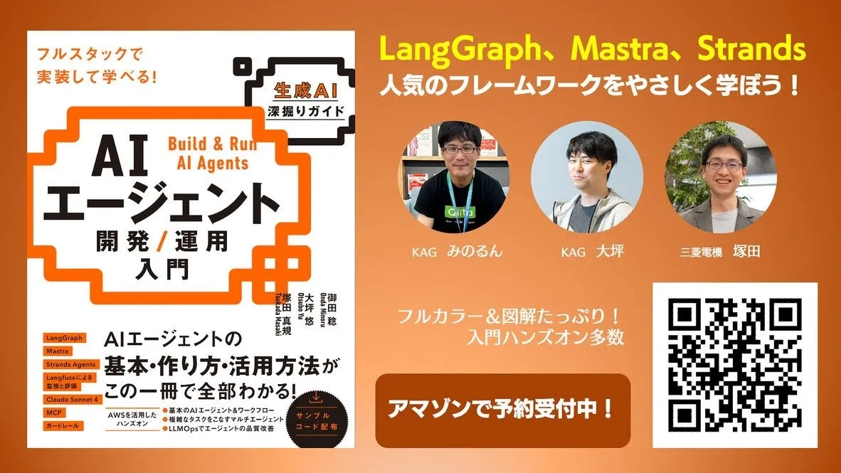 2025年にはAIエージェントが実務において重要な役割を果たすと予測されています。今や、コーディング補助製品など、AIエージェントを利用する人々は増え続けていますが、今後は自社専用のAIエージェントを開発できる人材が求められるようになると考えられます。そんな貴重な人材を育成するための指南書を、KDDIアジャイル開発センター株式会社のテックエバンジェリスト御田稔氏とソフトウェアエンジニア大坪悠氏が、三菱電機株式会社の塚田真規氏と共著で執筆しました。この入門書は、AIエージェントの開発と運用について、基礎から実践までを網羅的に解説しています。