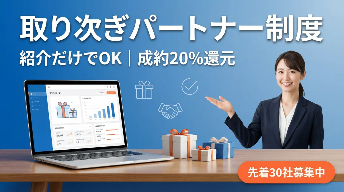 成約が成立した場合、成約金額の20%がパートナーに報酬として還元されます。申込は2026年2月19日から3月31日まで受け付け、先着順で行われます。
