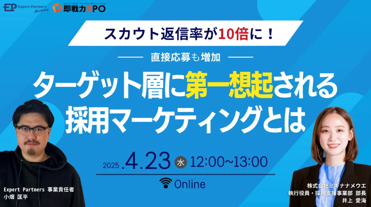 本ウェビナーでは、スカウト返信率が通常の10倍という実績を持つ採用マーケティング戦略について、成功事例を基に詳しく解説します。前半では、株式会社ミギナナメウエの担当者がこの分野の基礎知識を紹介し、続いて、Digital Arrow Partnersのマーケティングの専門家が具体的な施策や実行のポイントをお話しします。さらに、参加者との質疑応答を通じて、実務に役立つ情報を提供し、実際の採用活動に活かせる内容を目指しています。