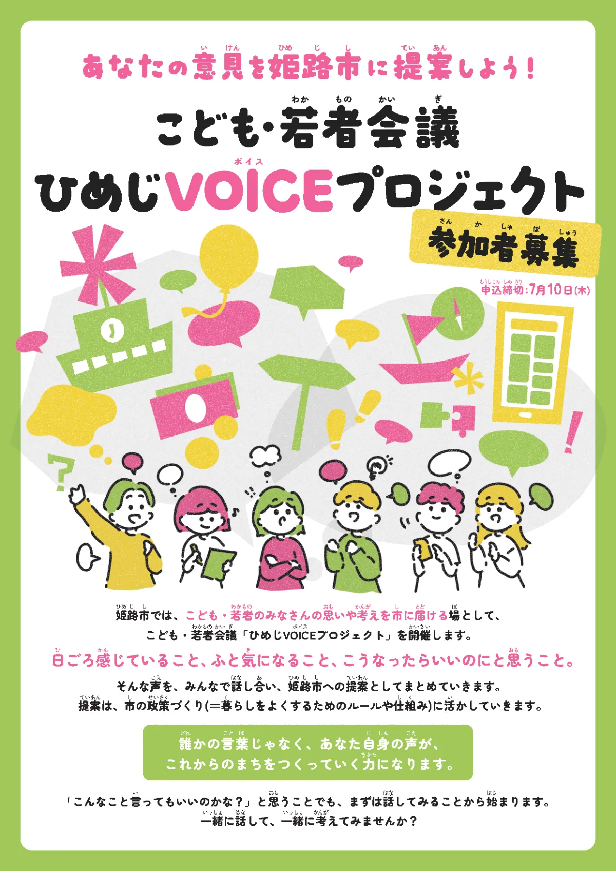 「ひめじVOICEプロジェクト」は、こどもと若者の声が市政に反映されることを目的にした重要な試みです。地域の未来を共に考え、形にするこの機会をお見逃しなく。