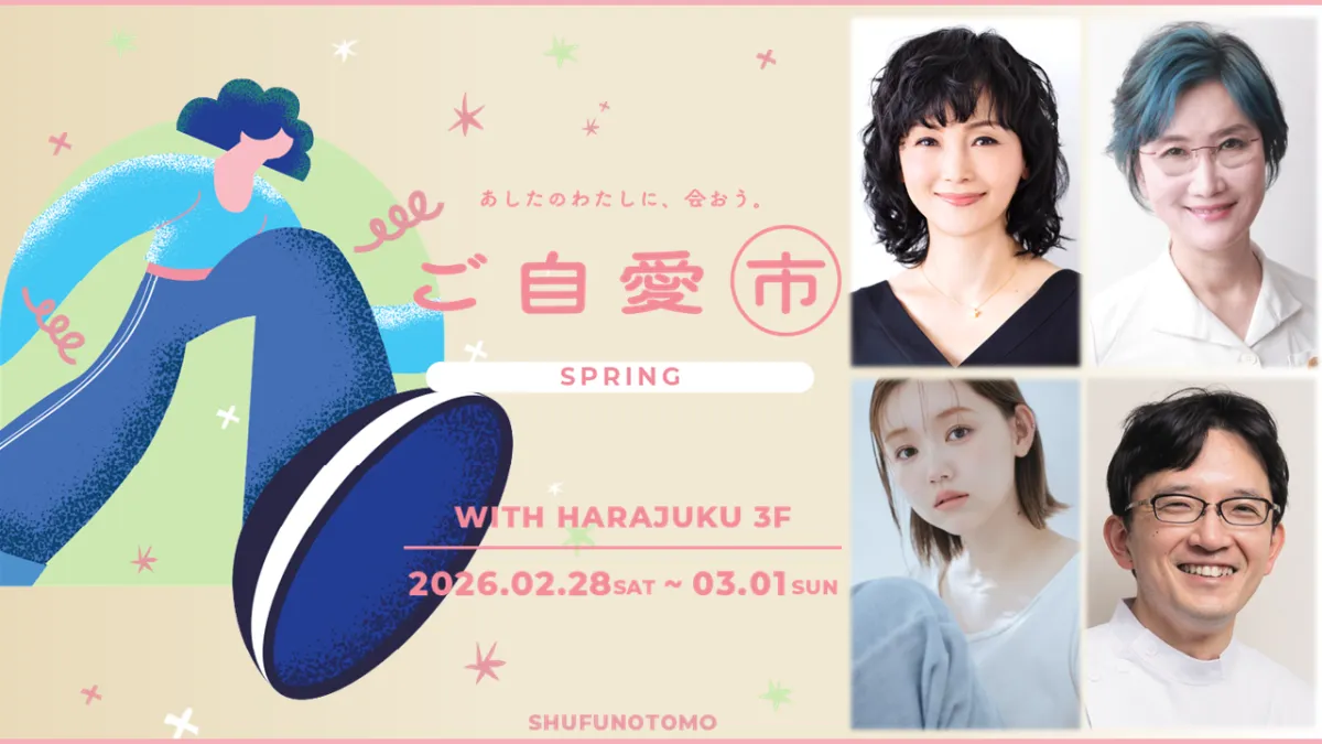 主婦の友社が主催するウェルネスイベント「あしたのわたしに、会おう。ご自愛市spring2026」が、2026年の2月28日(土)と3月1日(日)の2日間、東京都の原宿にて開催されます。このイベントでは、自分自身を大切にすることをテーマにしたトークショーやワークショップが行われ、豪華ゲストたちが登壇します。入場は無料で、お土産のプレゼントも用意しているとのことです。