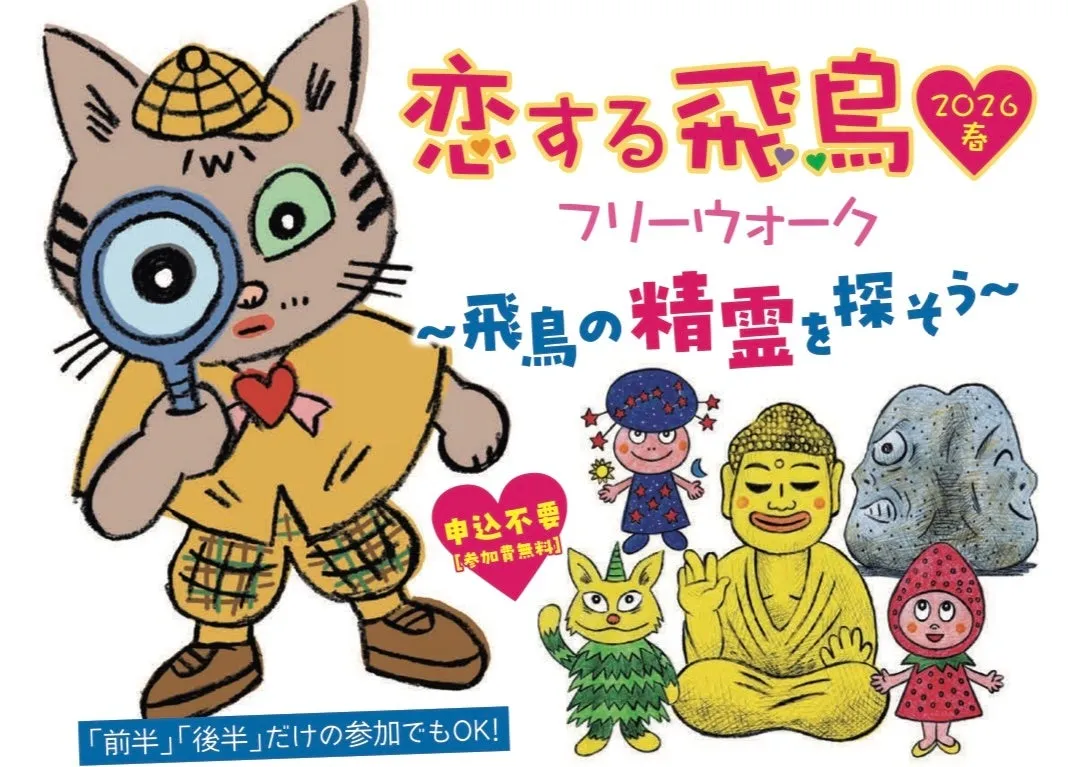 奈良県明日香村で開催される「恋する飛鳥2026春」は、自然、歴史、文化を体感できる特別なイベントです。約1ヶ月間にわたり、さまざまなアクティビティが楽しめます。イベントのテーマは「飛鳥の精霊」で、人気絵本作家の広瀬克也さんによる描き下ろしイラストが会場を彩ります。彼の「飛鳥の精霊」たちは、愛らしくもユーモラスな魅力を持ち、参加者を迎えてくれます。