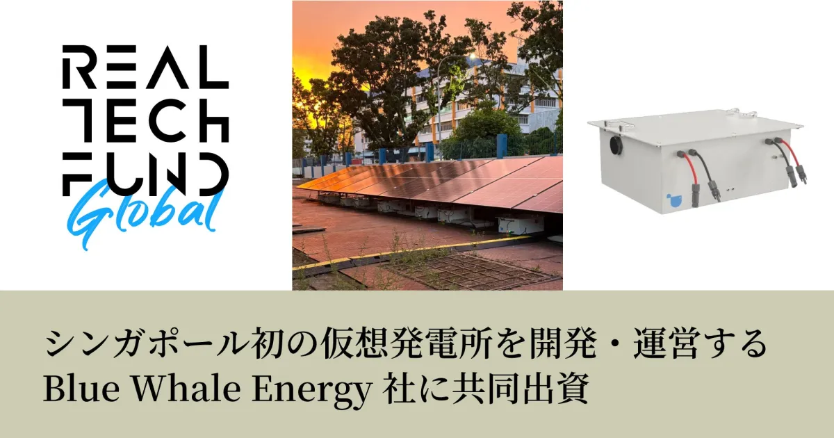 UntroD Capital Asia Pte. Ltd.が運営するリアルテックグローバル2号ファンド(G2号ファンド)は、株式会社山田商会ホールディングと共に、シンガポールにて先駆的な仮想発電所(VPP)を開発・運営するBlue Whale Energy社に共同出資しました。