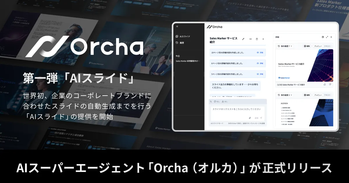 株式会社Sales Markerが、国内初となるAIスーパーエージェント『Orcha(オルカ)』を正式にリリースしました。この革新的なテクノロジーは、特に営業やマーケティング分野での活動を戦略的に自動化することを目的としています。また、新しい成長モデルである「インテントセールス」を実現する一環として位置付けられています。