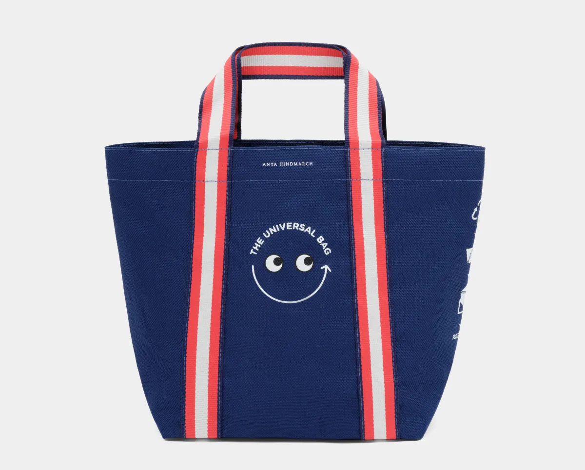 「The Universal Bag Mini」は、その名の通り、アニヤ・ハインドマーチの「The Universal Bag」のミニバージョンです。このプロジェクトは、2021年に始まり、アニヤ・ハインドマーチがサステイナブルな未来を見据えて、再利用可能なエコバッグの必要性を訴えるために立ち上げたものです。元々は、イギリスのスーパーマーケットとコラボレーションして、消費者の意識を変えることを目指して展開されました。