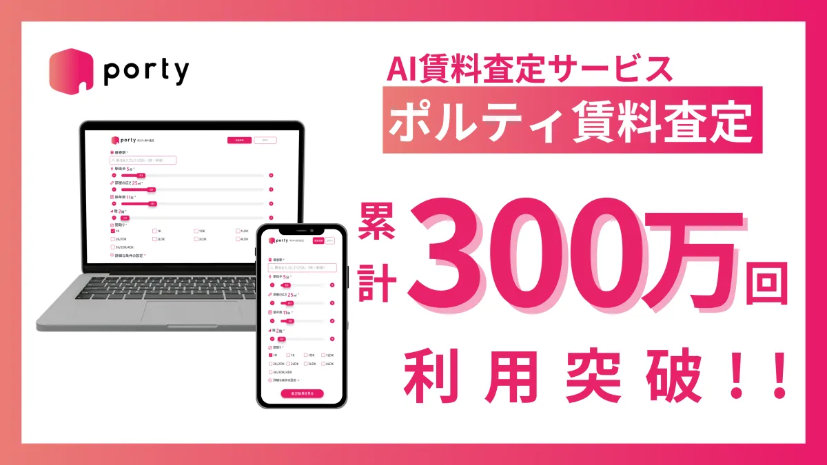 株式会社ポルティが運営するフリマアプリ『ポルティ』は、提供しているAI賃料査定サービスの利用回数が2025年4月末までに300万回を超えました。この成果は、同サービスのユーザーからの高い支持を証明しており、不動産市場における重要な位置づけを示しています。