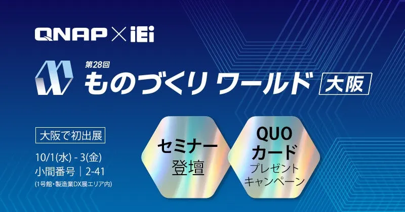 2025年10月1日から3日までインテックス大阪で開催される「第28回 ものづくりワールド大阪(製造業DX展)」に、QNAP® Systems, Inc.(以下QNAP)とそのグループ会社IEI Integration Corp.(以下IEI)が共同で出展します。ブース番号は1号館2-41です。