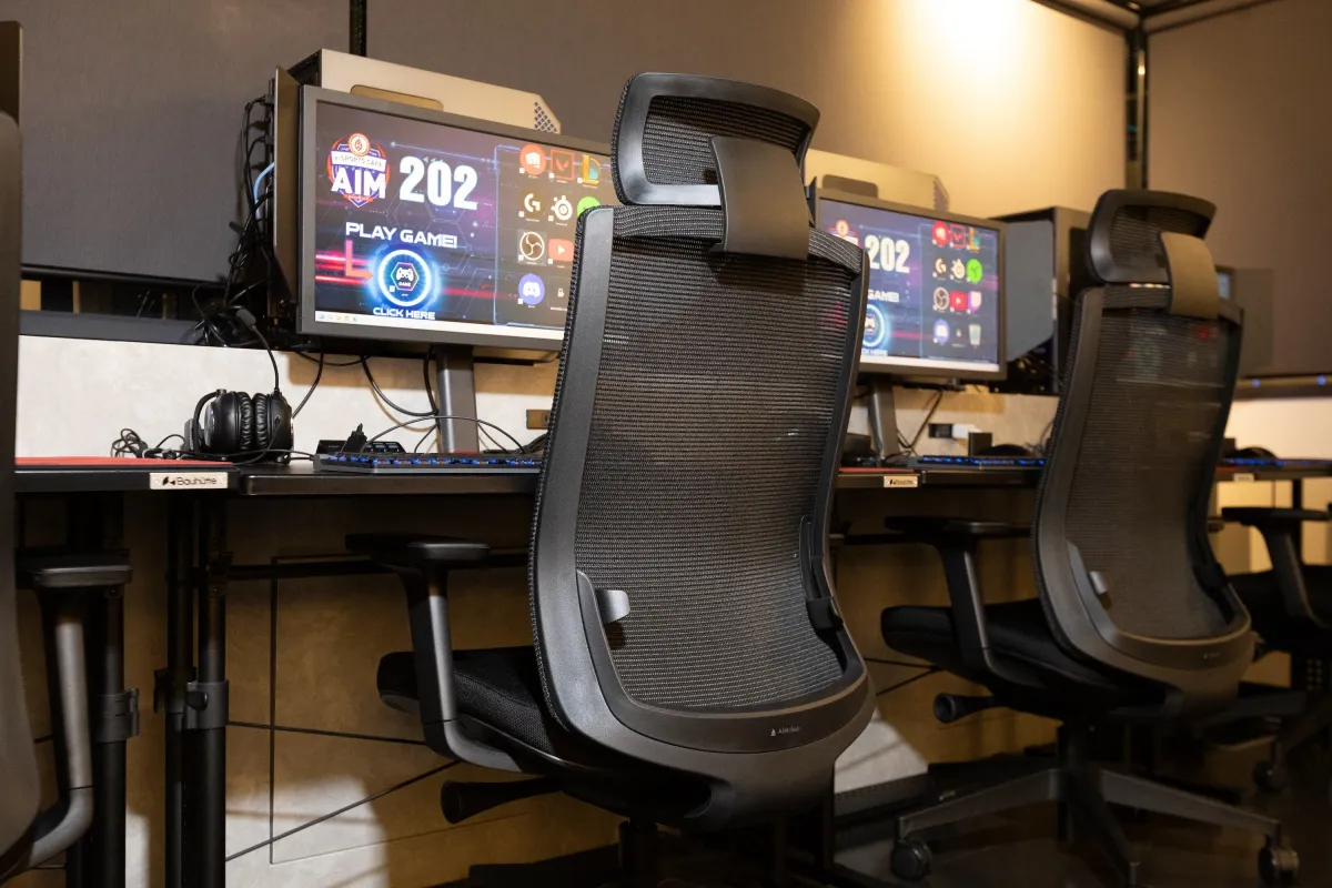 「AIMchair」は全席に設置されており、ZOWIE製品との組み合わせにより、最高のゲーム環境を実現しています。このチェアは、日本発のブランドであり、開発には現役のFPSプレイヤーが関与しています。長時間のゲームプレイでも快適さを追求したデザインが特徴です。