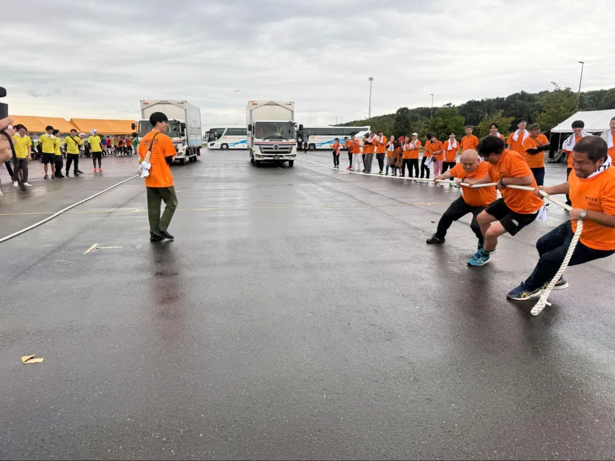 ブイキューブは、物流業に関連する魅力を引き立たせるため、実物のトラックを使用した綱引きを企画。外部専門家の協力を得て、入念な安全対策を施したため、参加者が安心して競技に挑むことができた。