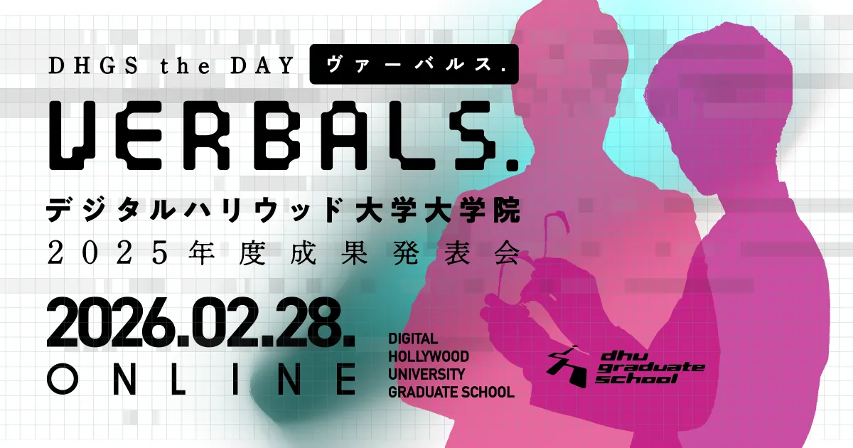 デジタルハリウッド大学大学院は、2025年度の成果発表会「VERBALS. DHGS the DAY」を2026年2月28日(土)にオンラインで開催すると発表しました。このイベントは、同大学院の修了課題プレゼンテーションであり、学生たちがデジタルコンテンツを活用した新たなサービスや製品を発表する貴重な機会です。