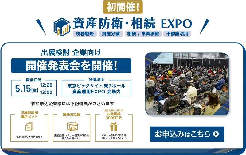 資産防衛・相続EXPOが2027年に初の展示会を開催