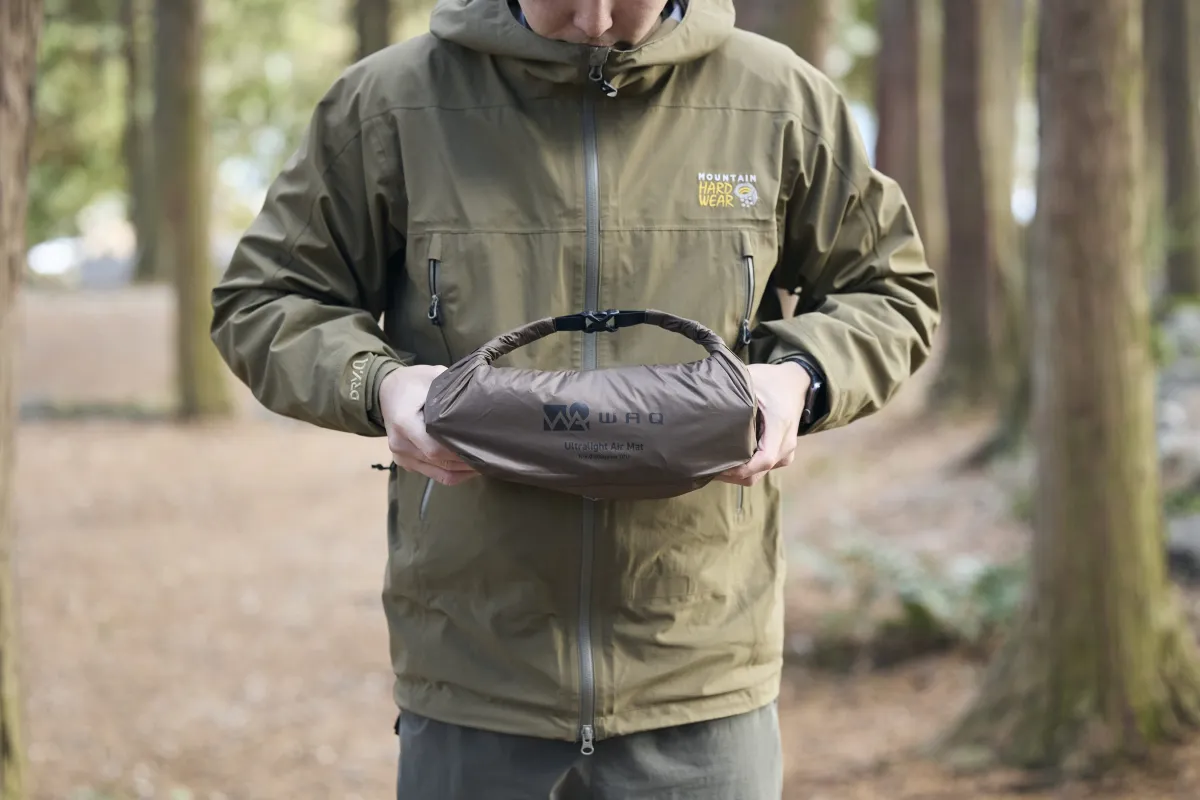 軽量設計にもこだわっており、マミー型が約640g、スクエア型が765gと、WAQのマットシリーズの中で最も軽量です。また、コンパクトに収納できるため、アウトドア時の持ち運びも楽々。収納サイズは従来品の約10分の1で、荷物が多くなるキャンプや登山の際には大変便利です。