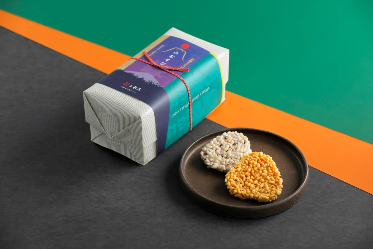 「山むすび 縁」は、2種類の味わいを楽しむことができます。職人の手で長い時間をかけて発酵させた「職人醤油 黒たまり」と、国産の七種類の穀物を用いた「七福米塩」の2種類が詰め合わされており、それぞれ5枚ずつのパッケージや、満足のいく20枚入りが用意されています。