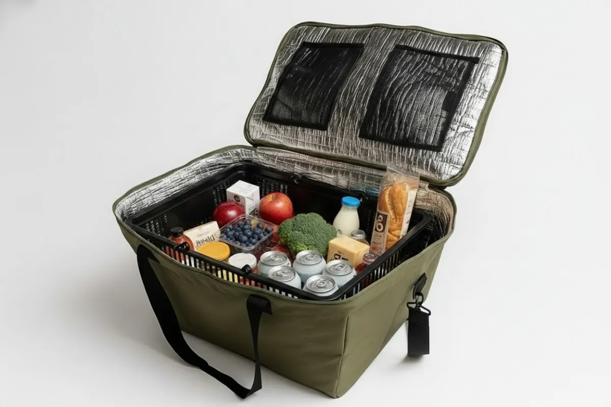 この保冷バッグは、マイレジカゴを直接セットできる設計となっており、レジでの袋詰め作業を省略できます。これにより、会計後の手間をぐっと軽減。ファスナーでしっかりと密閉できるため、食材は安定した状態で持ち帰ることができます。また、保冷材を併用することにより、買い物後の食材の温度管理もばっちり。特に暑い日には、その効果が大きく、安心して食品を持ち帰ることができます。
