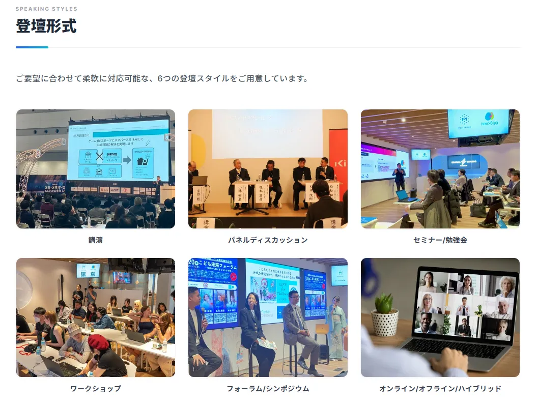その内容は多岐にわたり、参加者のニーズに応じて選べる6つの登壇スタイルを用意しています。